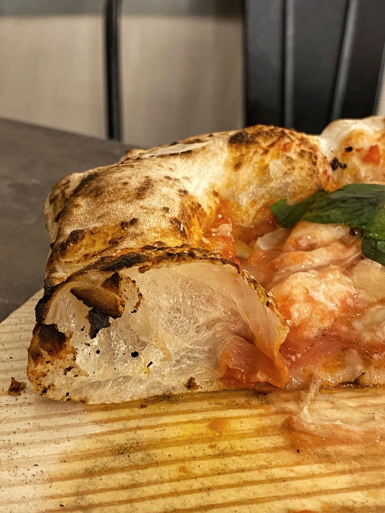 Le pizze. Tessuto moderno, profumo di grano, cottura omogenea che non lascia tracce a cruditè, alveoli psichedelici. Al morso impalpabile, un solido amorfo, un soffio caldo dal mulino. Tutto preciso ma non artefatto, il sapor di buono permane in radici identitarie, con timbro e firma, elemento di simmetria di topping ricercati ma non rococò.