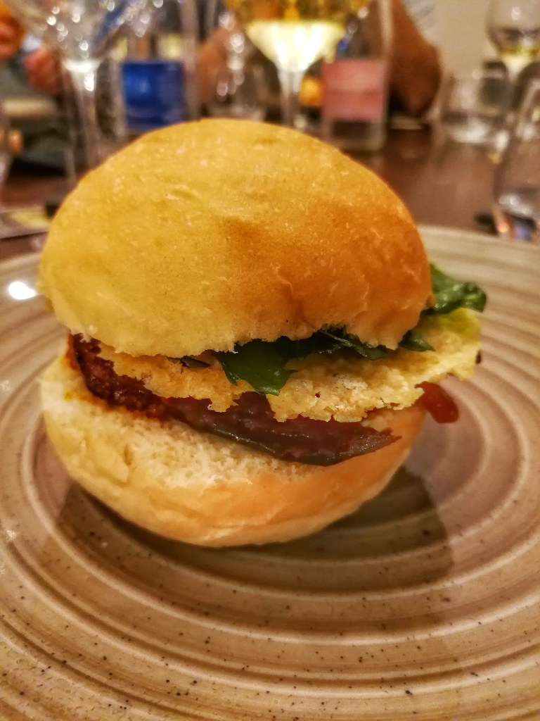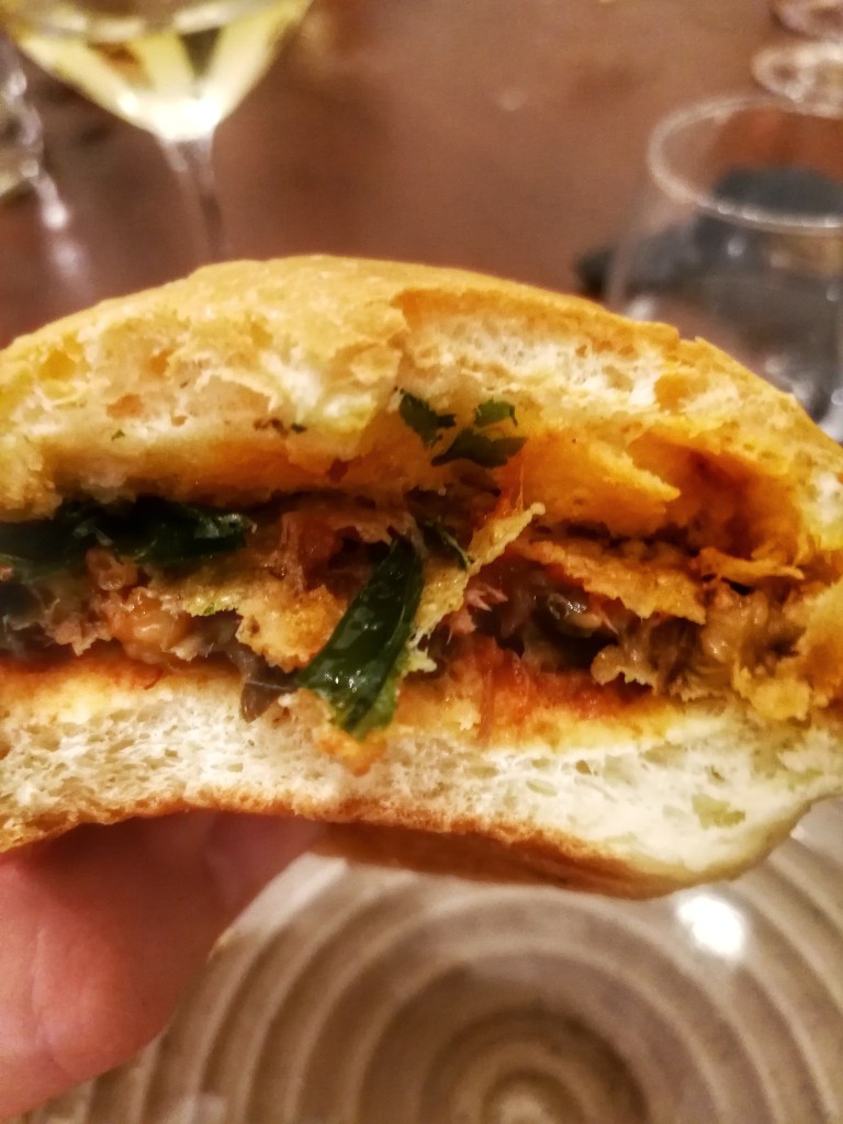 Non farsi mancare niente! Soffice, macché sofficissimo… Un soffio il bun tradizionale con ragù napoletano, parmigiana, cialda di Grana Padano, basilico fritto. Un panino gastrocratico (dove non sta per aristocratico ma democratico). Psico felicità.