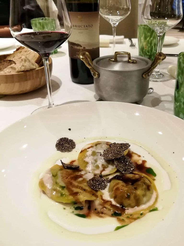 Bis, tris e applausi per i Piccoli Ravioli con genovese di manzo, vellutata di pecorino e tartufo nero; semplicissimo (in realtà semplicissimo un cacchio): la precisione della pasta, l’audacia del ripieno, l’equilibrio dei co-protagonisti. Mangiato, fatto scarpetta. Carezze incluse.