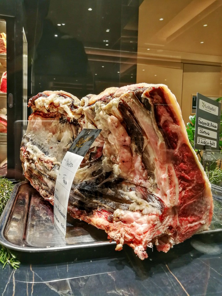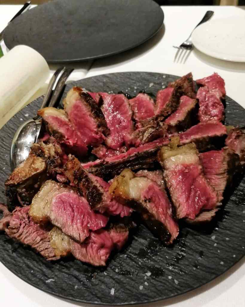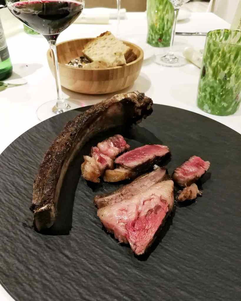 Costata Manzetta dei Laghi. Scottona della Masuria, insomma. Osso che avvolge tutto il perimetro della carne. Infiltrazioni di grasso e le dimensioni che contano. 90 giorni di frollatura. Gusto elegante e tenerezza disarmante. Ragazzi che ciccia!!