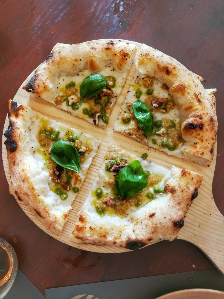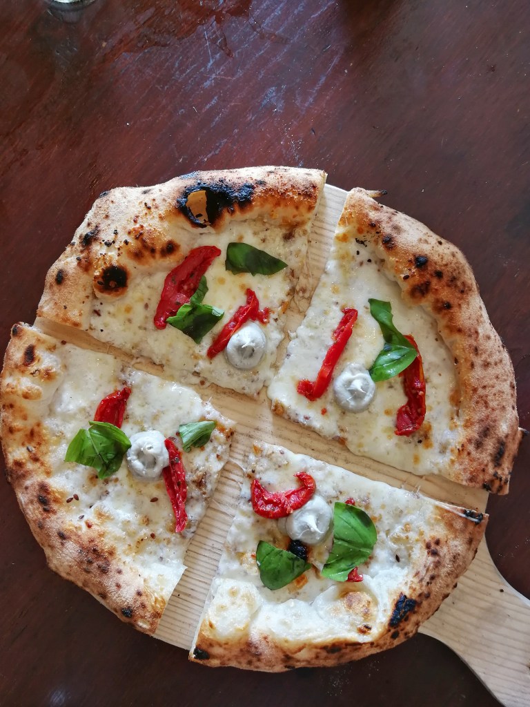 La 4 Casi Campani è il colpo di fulmine, il “cheese” che atteggia le labbra a sorriso. Quanto sono democratici insieme certi formaggi: provolone del Monaco, caciocavallo podolico, Blu di bufala, Pecorino Carmasciano, fiordilatte d’Agerola. Pomodorini semidry e crumble multicerali giochicchiano con la cremosità. Rugiada per il palato [auto cit.].