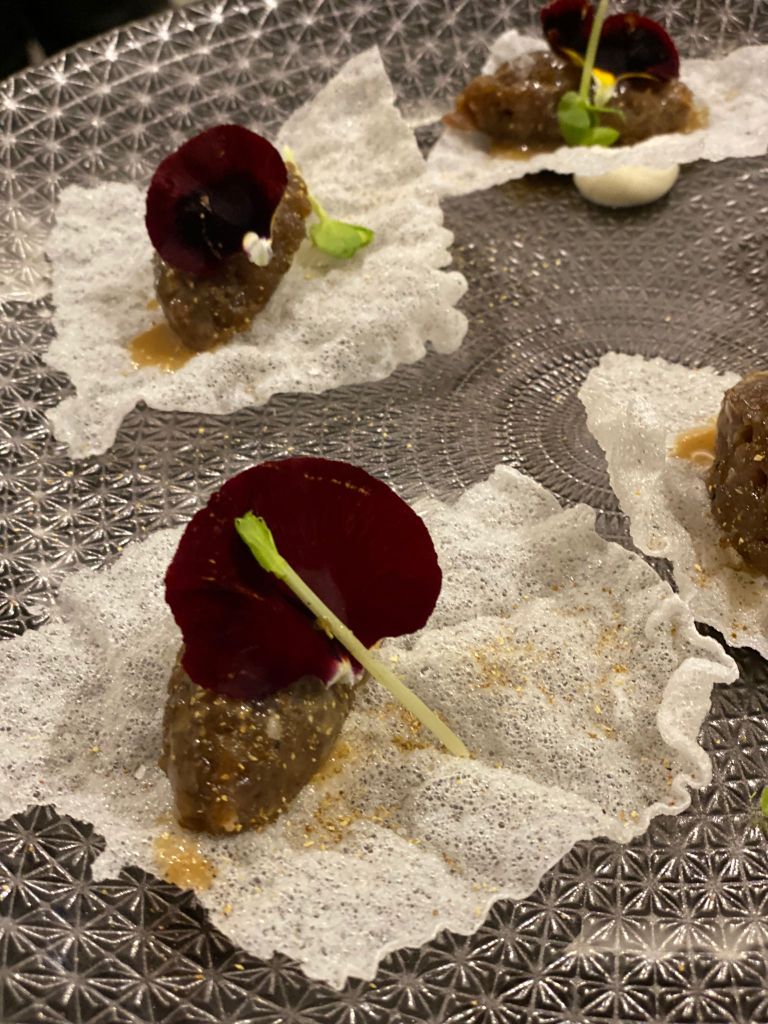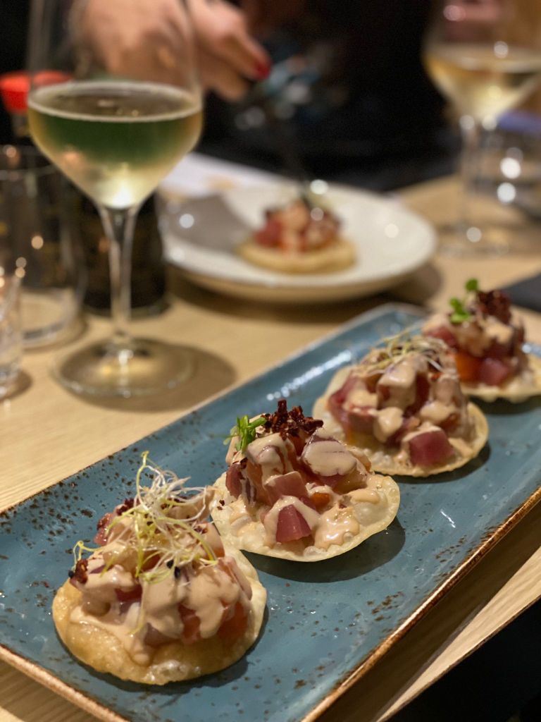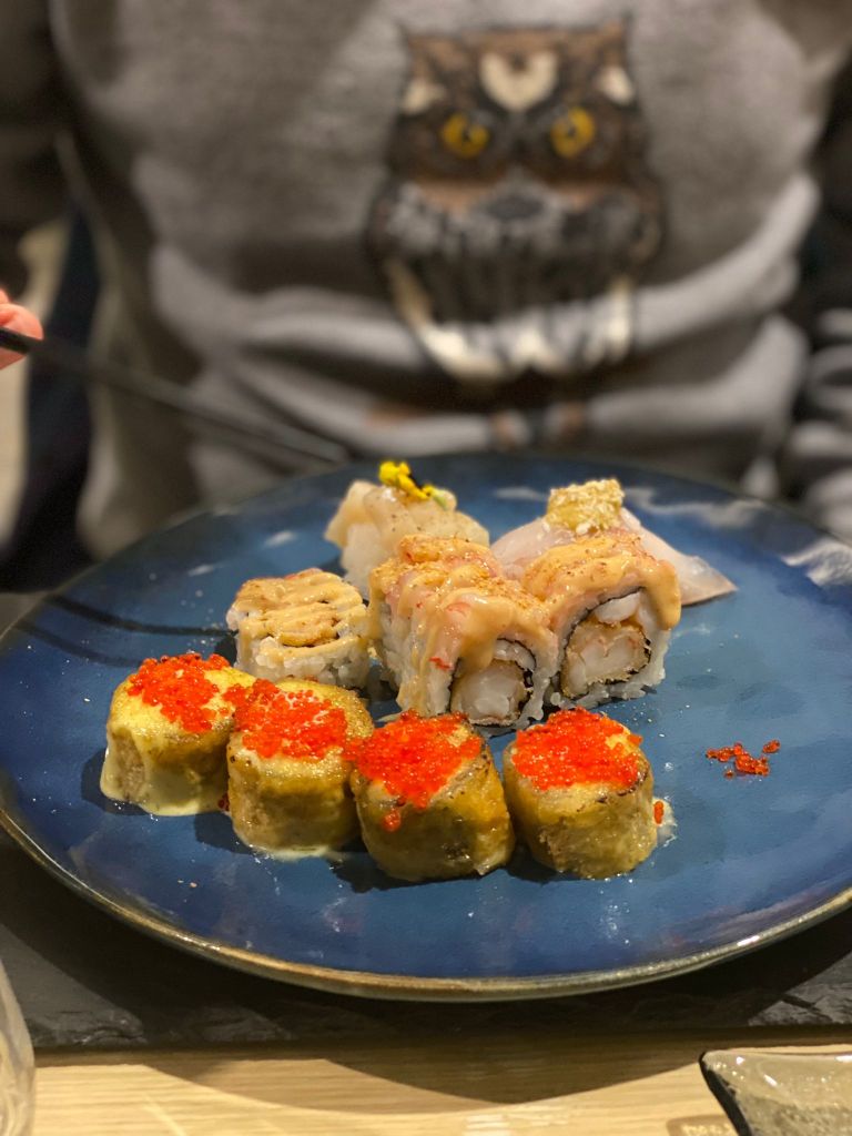 Un susseguirsi di intrecci. I Fuji Bon Bon, involtini con polpa di granchio fritta nel panko avvolti da salmone scottato ricoperto di salsa bon bon e teryaki, granella di patatine bianche e uova di pesce volante, ricchi e intensi; le Nihon Chips, chips di riso con tartare di tonno, sale maldom, teryaki al tartufo, tahini e pepe giapponese, proposta per i più audaci.