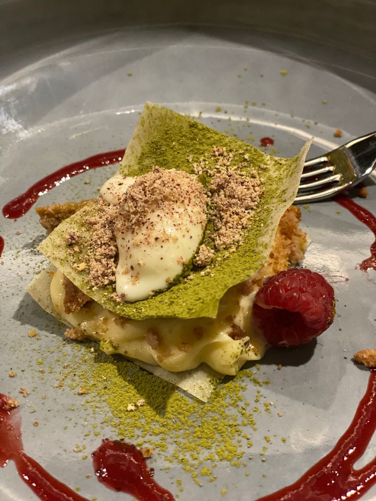 Un’esperienza che conquista anche per la grazia del fine pasto; la Sweet Aki è la millefoglie di pasta fillo con mela annurca from Japan che spiazza…