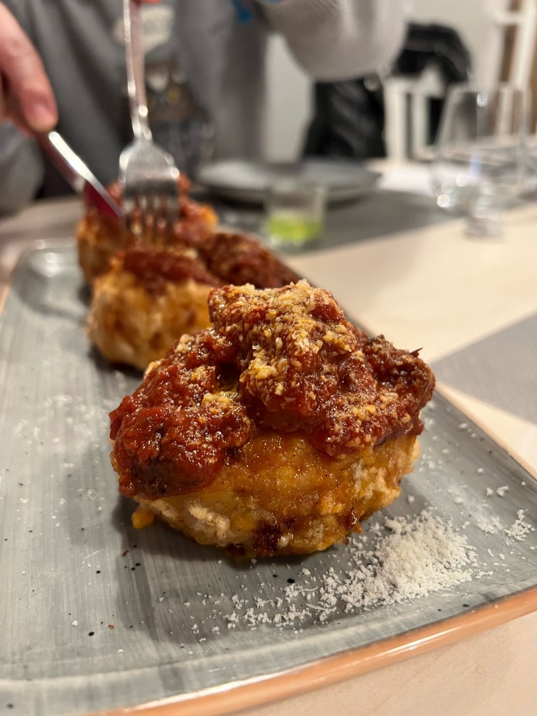 Spazio alla creatività mista alla cucina nel finale: montanara di Polpo alla Luciana e cannoncini dolci con la pasta della pizza.