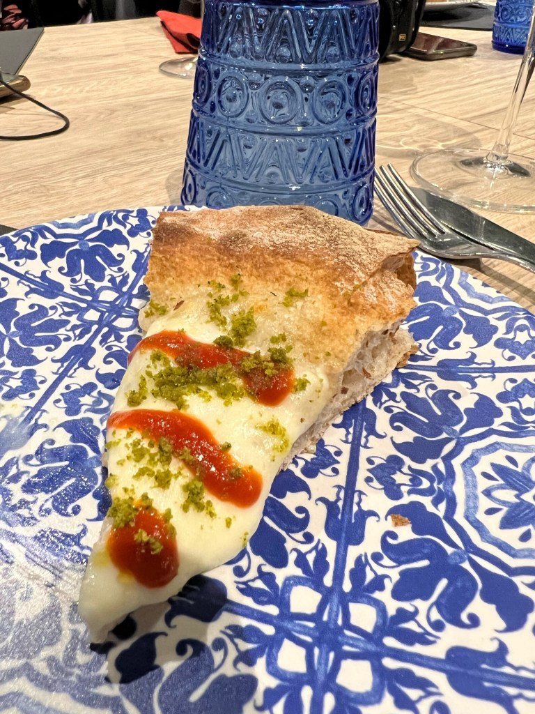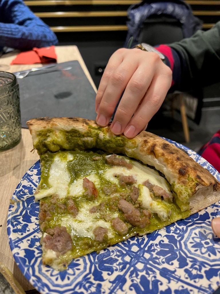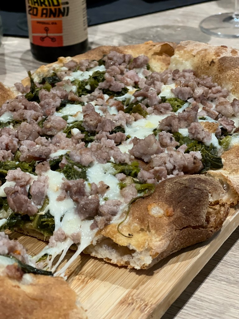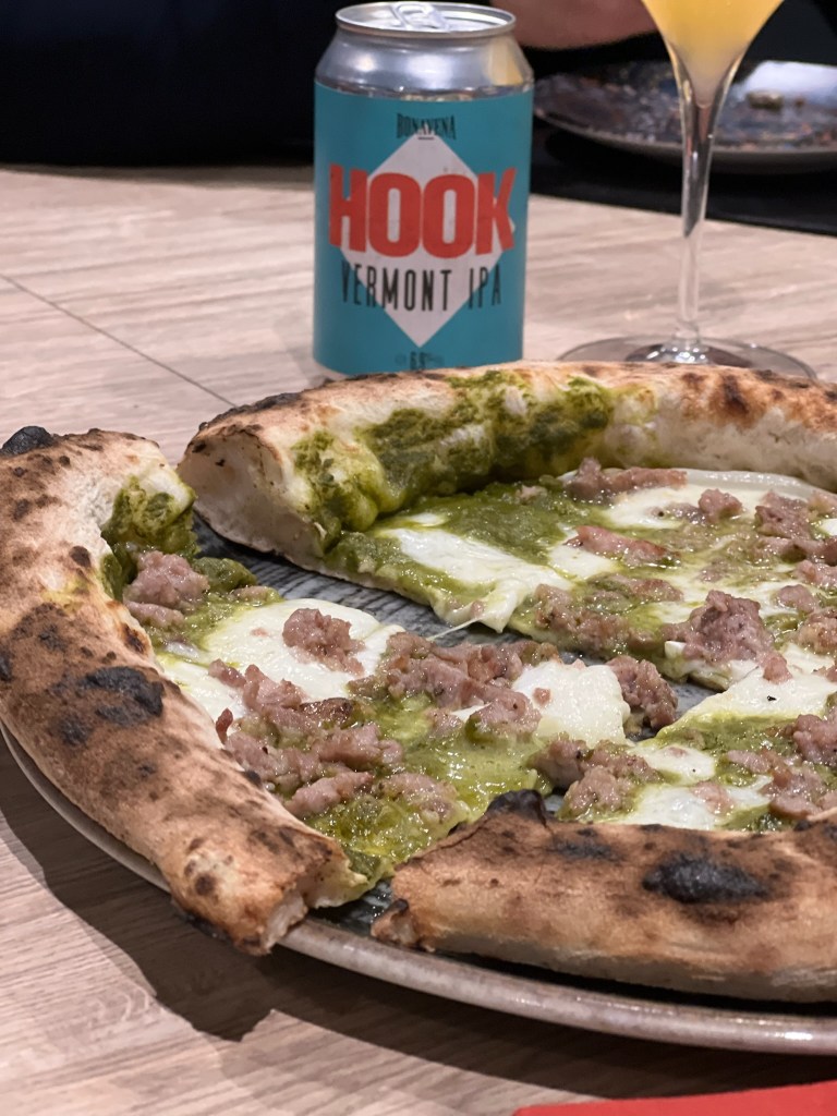 Avantguarde e pizza trend nella classica dove la crema verde avvolge e la ciccia umbra trasuda bontà.