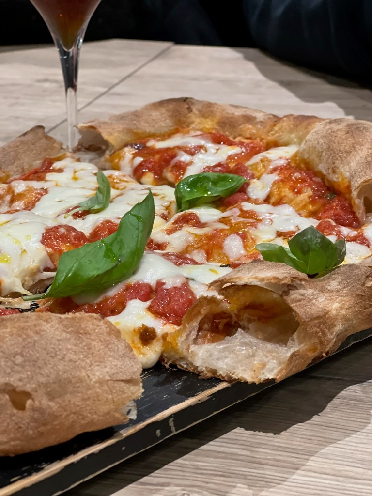 Total Pizza Experience, giochi senza frontiere di consistenze per la Margherita e la Salsiccia & Friarielli: i due gusti della tradizione partenopea coniugati, ciascuno, in un percorso orizzontale, simbiosi perfetta tra “carta degli impasti”, fantasia del topping e beer pairing.