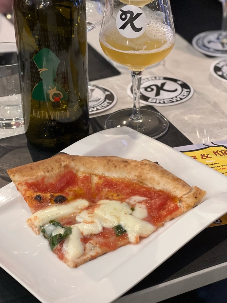 Così la Margherita, con San Marzano, fiordilatte e parmigiano abbraccia la Natavot, una Lager non filtrata e non pastorizzata. Beverina, fresca, dissetante, impeccabile con Margot, che si presta ad essere ribevuta. Natavot insomma, San Gennaro, in etichetta, ci perdonerà!