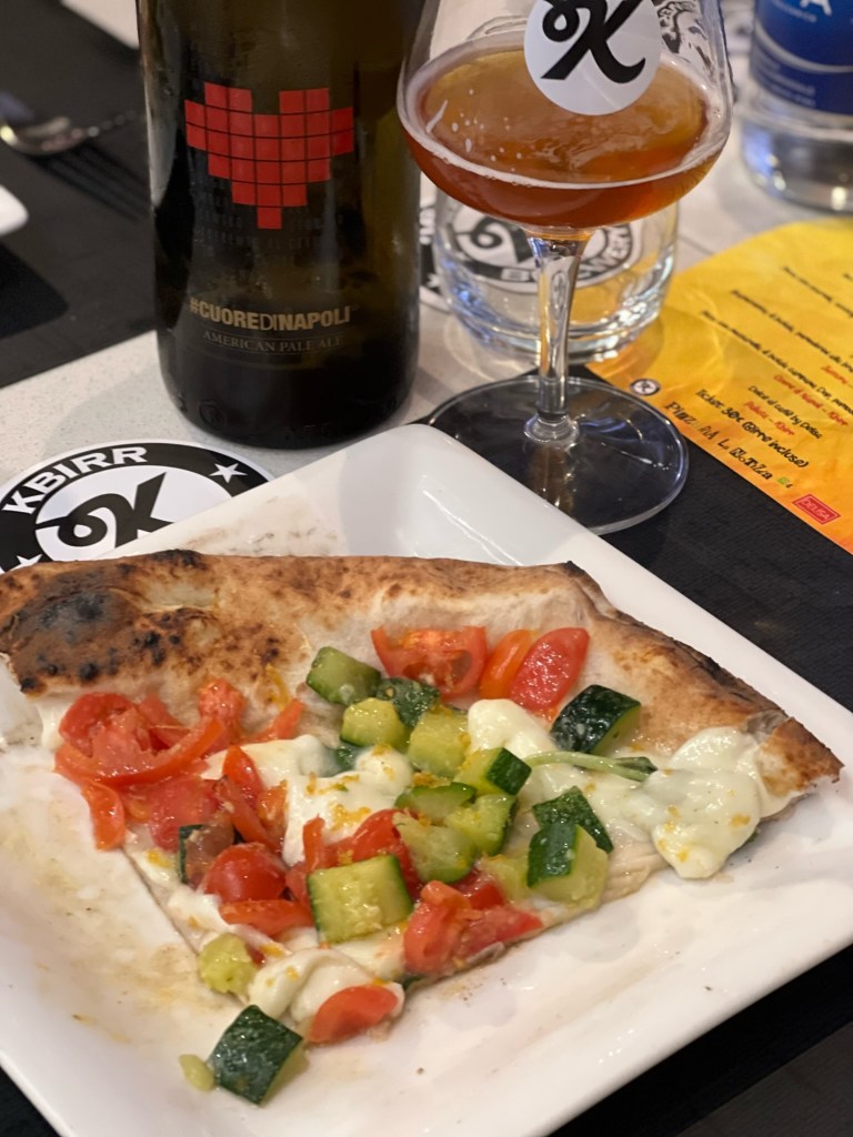 La Cuore di Napoli, una American Pale Ale dai freschi profumi e dalle note agrumate, batte troppo più forte rispetto all’ultima proposta dal pensiero timido. L’esplosione fragrante vince sul finale fatto di mozzarella di bufala campana Dop, pomodori datterini, zucchine e bottarga.