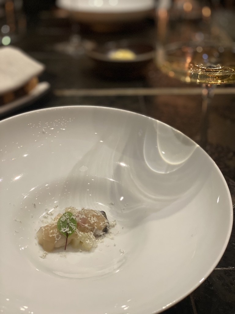 – Ostrica, per e muss, salsa allo scalogno, bieta in costa e formaggio erborinato;