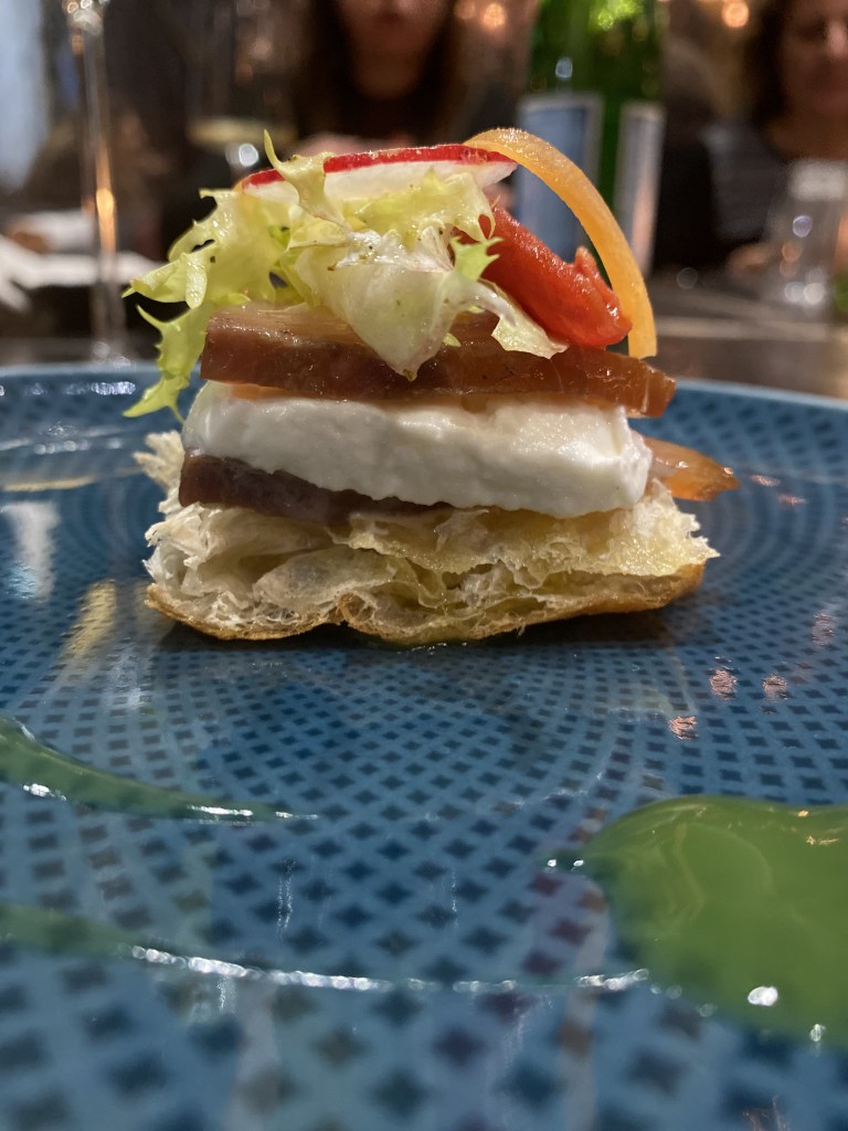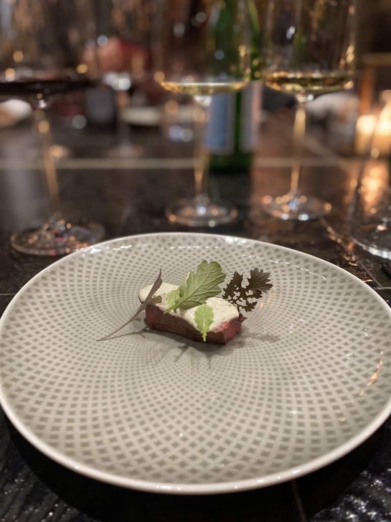 “Una notte stellata”, il titolo della “opera” ai fornelli a quattro mani di Raffaele Campagnola, resident chef, col suo “maestro” Gianluca D’Agostino, fino a pochi mesi fa chef del Veritas Restaurant dove nel 2016 ha conquistato la stella Michelin.