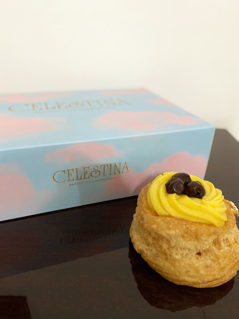 Una delicatesse di scioglievolezza, taglia M/L, pasta choux tridimensionale, un vortice perfetto di morbidezza. Cottura magistrale, frittura completamente assente, doratissima. Crema pasticcera, inside & outside, bella, gialla seria, come da tradizione. Puntinata (fantastico indice di qualità che denota l’utilizzo di vaniglia naturale), generosa, avvolgente che lascia il palato sublimamente lucido da far venire voglia di mangiarne subito un’altra. Amarene intere in superficie che donano note acide.