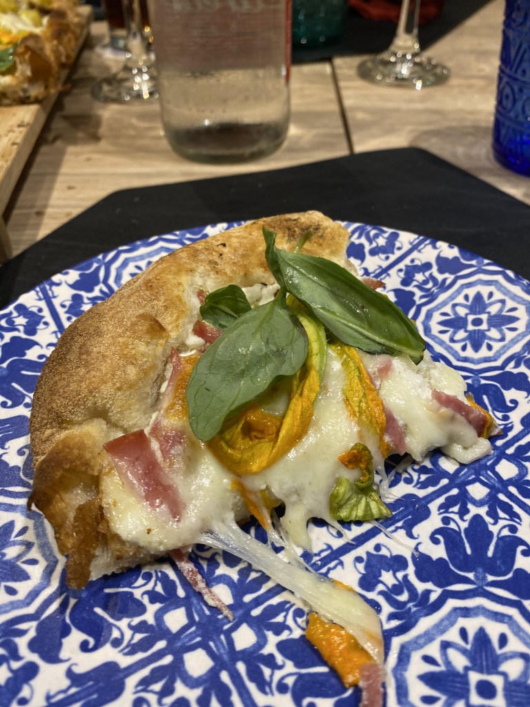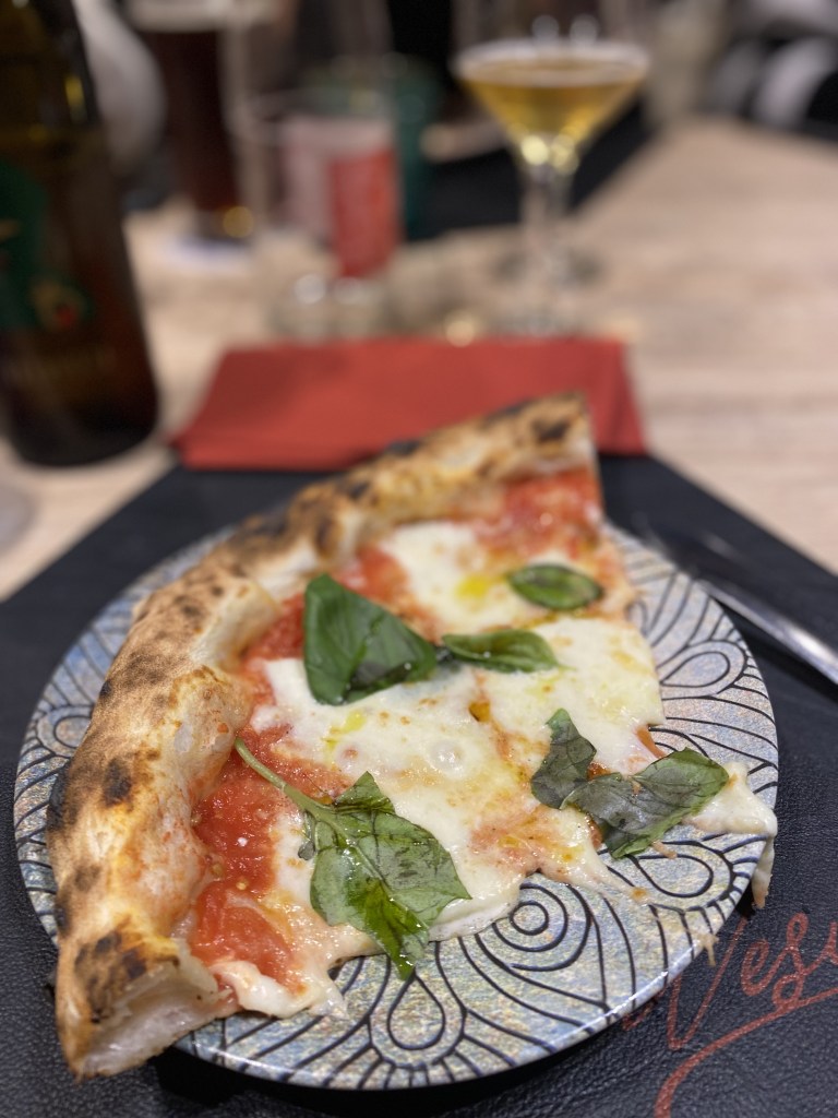 Quanto è cresciuta la Margherita e non solo nella preparazione fancy. La Emme di San Gennaro e quel miracolo non c’entra: pomodoro San Marzano Miracolo di San Gennaro frantumato a mano, mozzarella misto bufala, parmigiano reggiano, basilico, olio evo. Impasto strutturato, solubile ed elegante al palato, poco sapido e cotto diligentemente a legna. Topping che ferma il tempo, sapore confortante che grida equilibrio tra acidità, sapidità e dolcezza. Antipasto, entremêt o main course, affetto totalmente stabile.