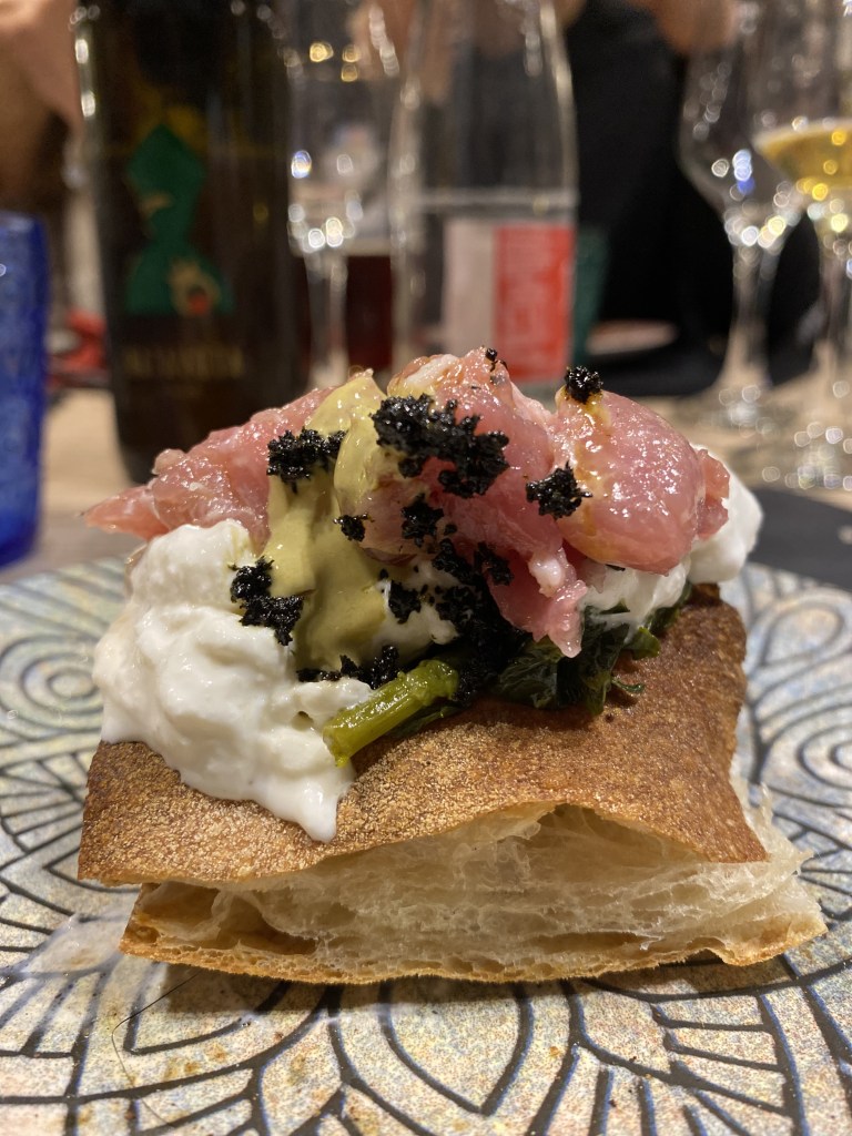 – la Burrata e Chianina, con misticanza di campo e maionese al wasabi, caravaggesca, sapore di realismo;