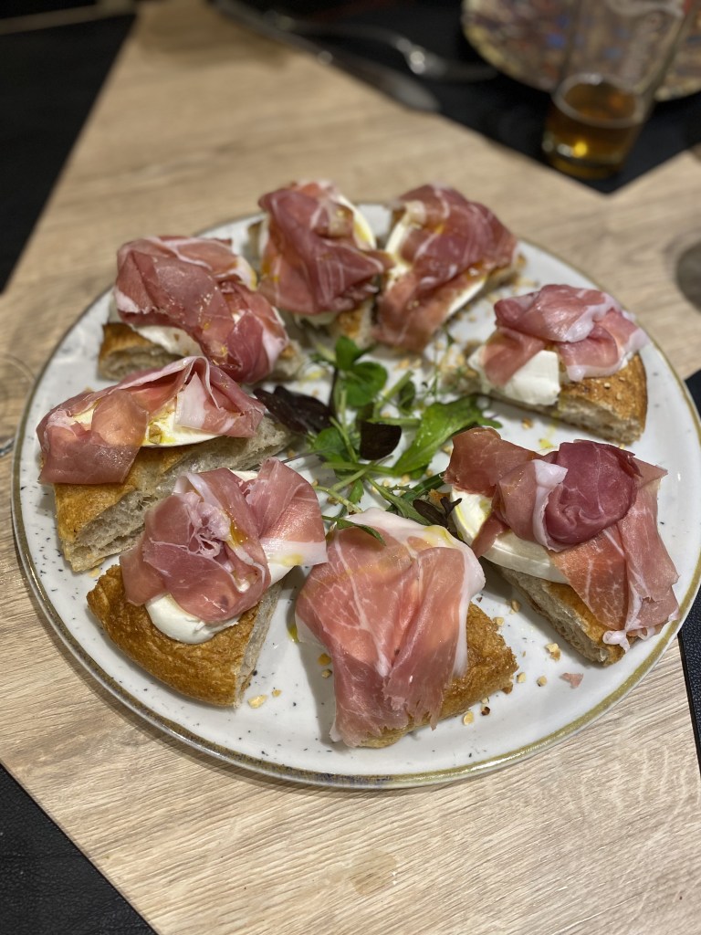Il Food Ensemble abbandona lo scrocchio e si abbandona alla leggerezza. Una delle consistenze più incomprensibili, leggerezza e sofficità, crosticina alla base e fragranza illegale che facilita l’emozione. Pizza al padellino servita a 8 spicchi come pizza da degustazione (a mo’ di tapas). Bello ed elegante l’impasto con grani Campani macinati a pietra e lievito madre; il crudo, la bufala e le nocciole il bouquet che scintilla. Boho chic.