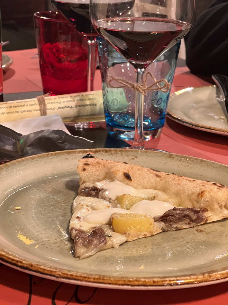 Le pizze diventano ricette, il topping manifesta studio e ricerca trascendendo con estrema consapevolezza la tipicità. Così per la Maialona del Vesuvio, con pulled pork vesuviano preparato con spalla di maiale (selezione Bifulco) brasata con Lacryma Christi rosso del Vesuvio e spezie, così per la Genovesuviana, con stracotto di spezzatino di manzo (selezione Bifulco) in salsa di cipolla sfumata al vino Catalanesca, brodo vegetale e aromi. Realizzazioni dove vive ancora il sentimento delle cose fatte con amore. Complessità vanitosa con semplicità ricercata.