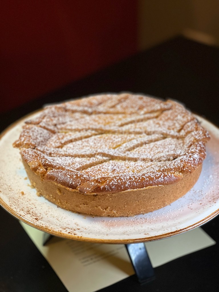 Fine pasto rivisitazione ancora in chiave di recupero. Alchimia da Panpastiera: pasta frolla fatta con pangrattato (di cui sopra), crema a latte di mollica (di cui sopra), fiori d’arancio e riduzione di vino Lacryma Christi del Vesuvio. Pura follia, pura magia, la bontà dell’inaudito.