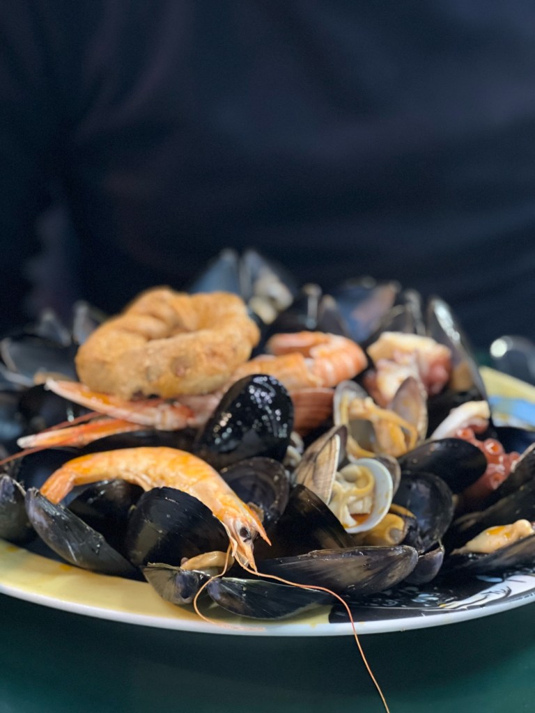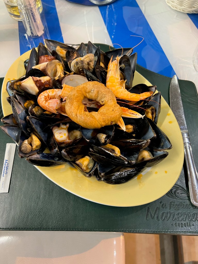 Cozze, polpi, maruzzielli, vongole, fasolare, scampi.