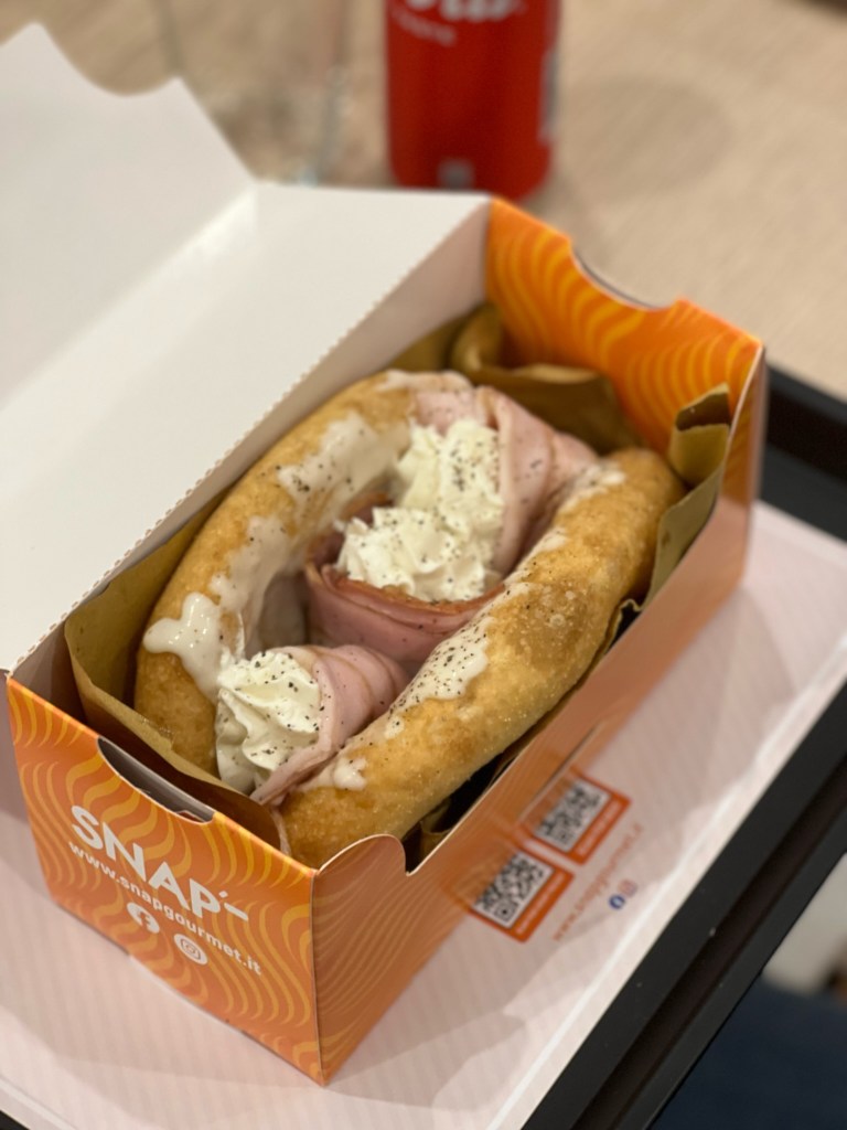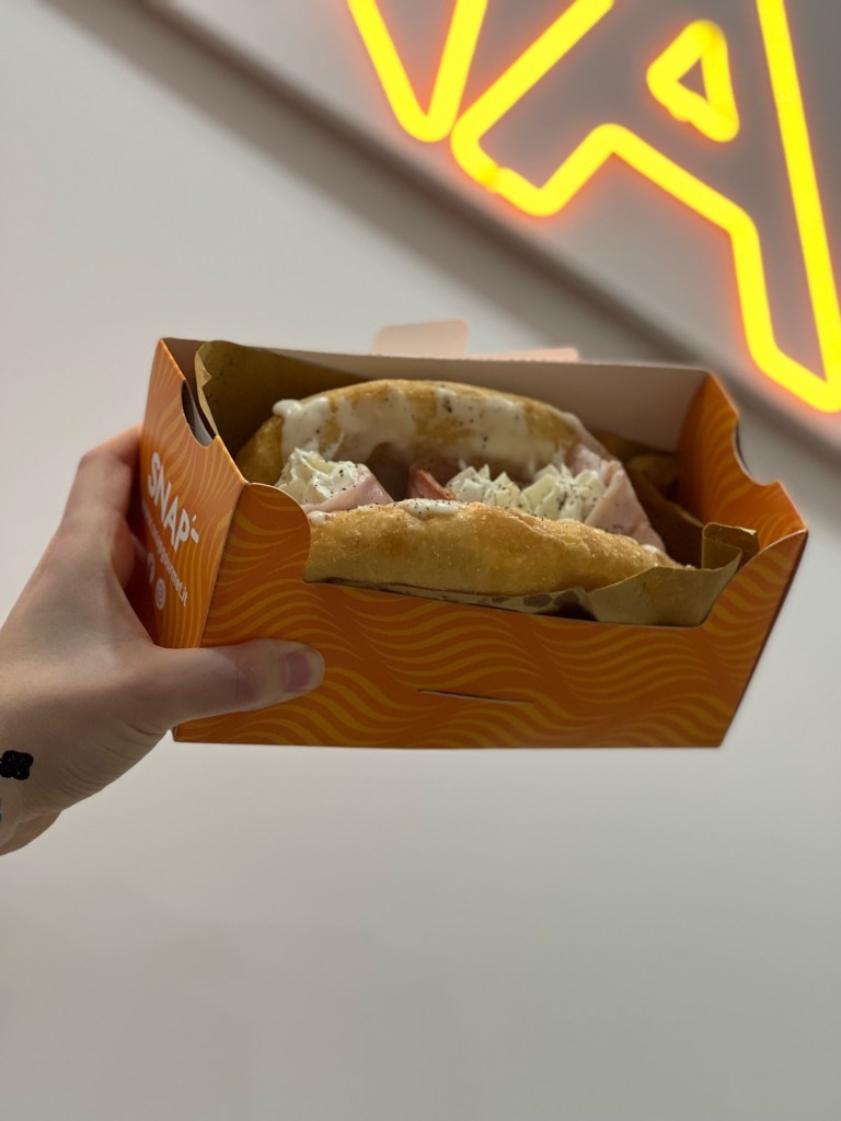 Da un’idea di Felice D’Onofrio e Giovanni Russo nasce SNAP Fast Food Gourmet arsenale libidinoso di una caterva di Crispy Pocket. Una montanara ripiegata a mo’ di tacos, che accoglie una goduriosa farcitura, aggiunta a valle dopo la frittura. Impasto moderno, alta idratazione e 48 ore di maturazione, realizzato con un blend di farine di tipo 0 e 1 e uno spolvero di semola e farina fioretto di mais. In cucina e con le mani in pasta, ci sono chef Vincenzo Scognamiglio e Germano Eugenio aiuto cuoco. Farciture outside, ripeto, semplici e dal profumo di tradizione, disegnate dalla consulenza dello chef Salvatore Sodano, che ha sviluppato tutte le ricette, esaltando i prodotti nostrani DOP e IGP, in un valzer di emulsioni, ragù, affumicature e creme.