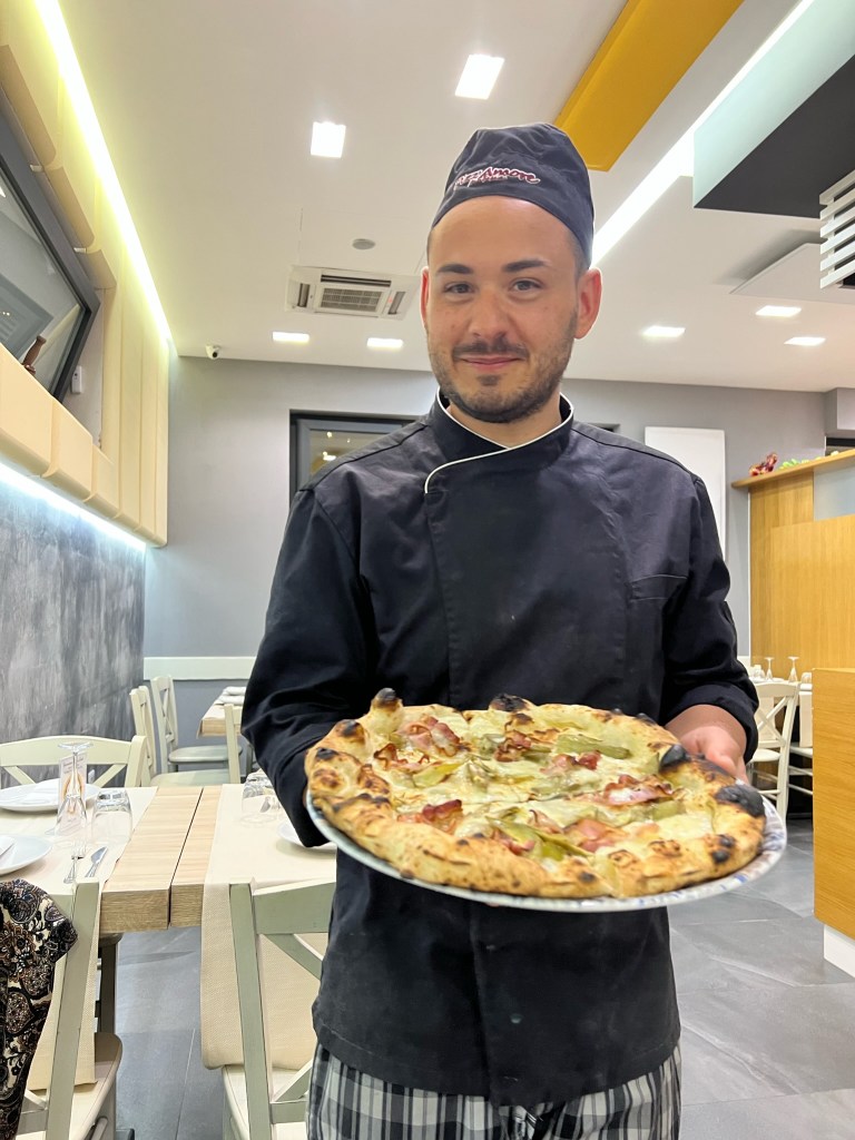 All’ombra del Santuario della Madonna dell’Arco (Sant’Anastasia – Na), una triade si mescola benissimo… Pizz’Amore e fantasia, a cura di Salvatore Palma. Giovane, sorridente e con tanta voglia di ammaccare e conciare.