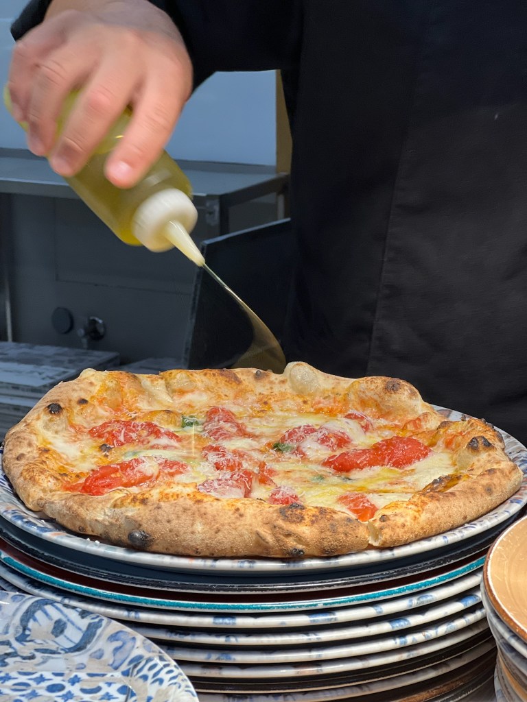 Da vera pizzeria di quartiere, l’impasto si modella con il carattere del topping. Cornicione timido, consistenza e struttura e mo morbidosa e mo scrocchiarella e mo un mix di scioglievolezza e leggero crunch.