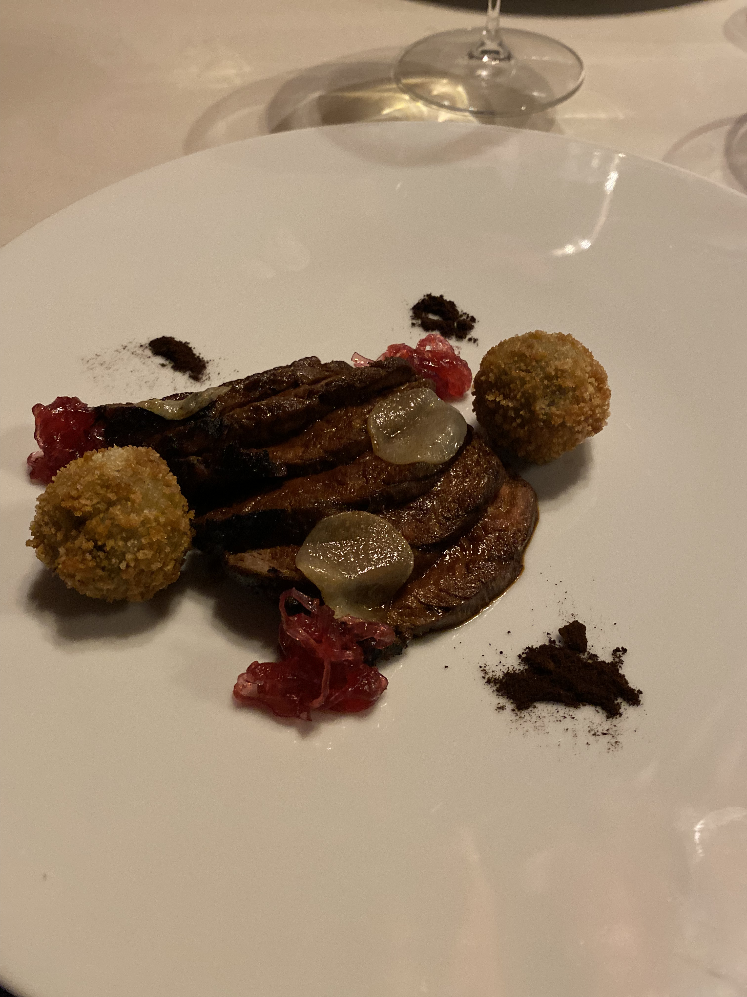 Un concetto preciso di armonia totale il teriyaki di podolica con caciocavallo, polpette di melanzane, cipolla caramellata e liquirizia. Completo, dinamico, ricco di sfumature. Idilliaco.