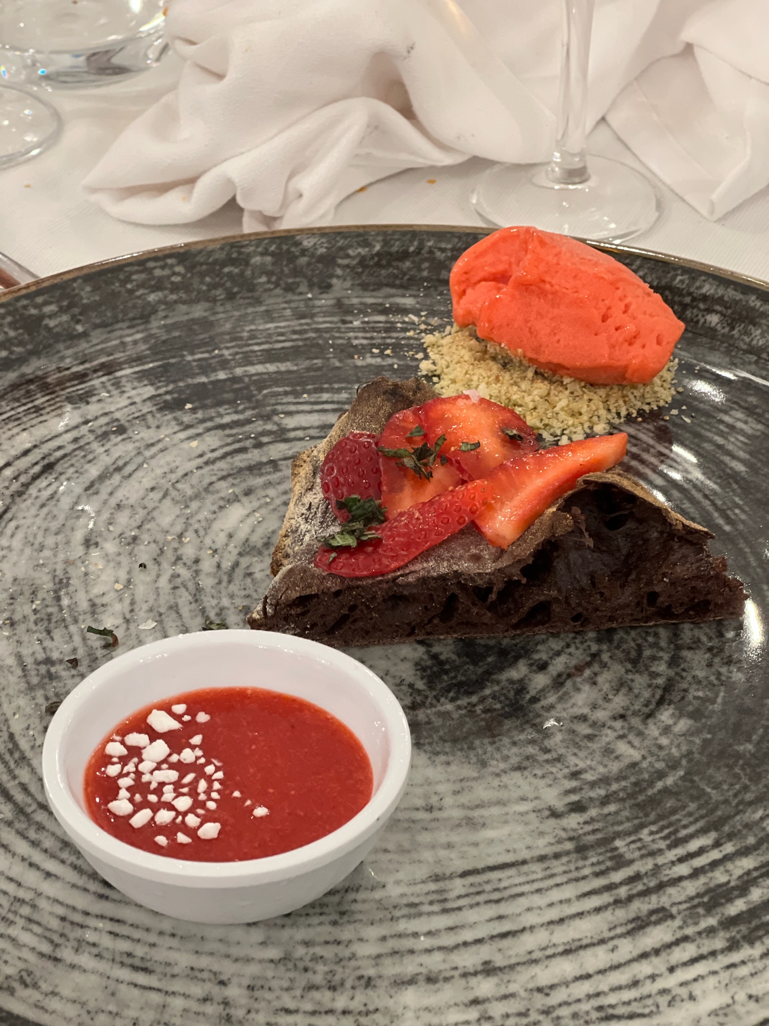 Da applausi i pairing di Pina coi sorbetti limone-basilico e sedano-lime-tequila che disegna, infine, con le fragole su impasto al cioccolato. Viva la pizza col gelato!