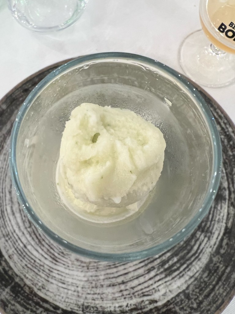 prendere cialda di pizza e cicciarla nel gelato al latte di bufala e mozzarella di bufala, con basilico fritto, olio evo e sale. Matrimonio felice. Ci ho fatto scarpetta e non sono stato il solo.