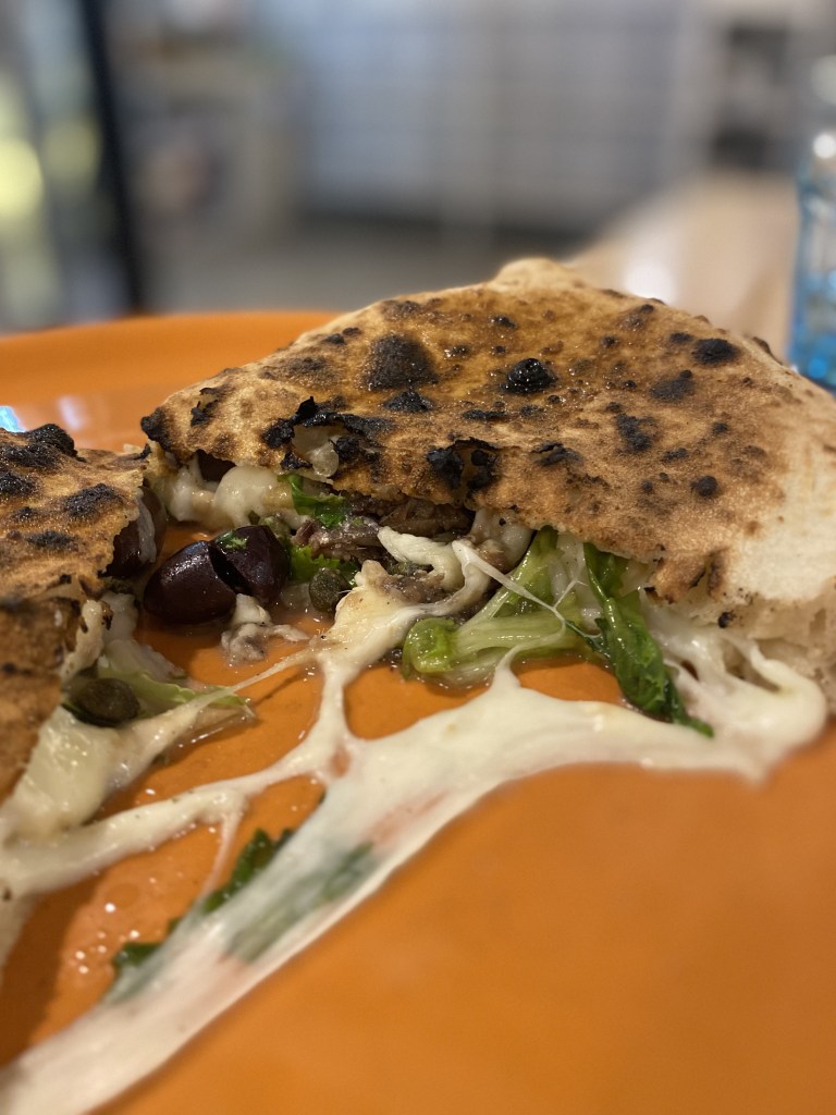 Il ripieno è 0823. La scarola è a crudo e scrocchia tra provola, acciughe di Cetara, capperi, olive nere di Gaeta e pinoli. Ricca, luculliana, delicata e audace allo stesso tempo, priva di gradienti sterili ai vertici. Cottura precisa come nel primo caso. Asticella alta per assuefazione da ingredienti qualitativamente egregi. Esempio di ricordo che rimane.