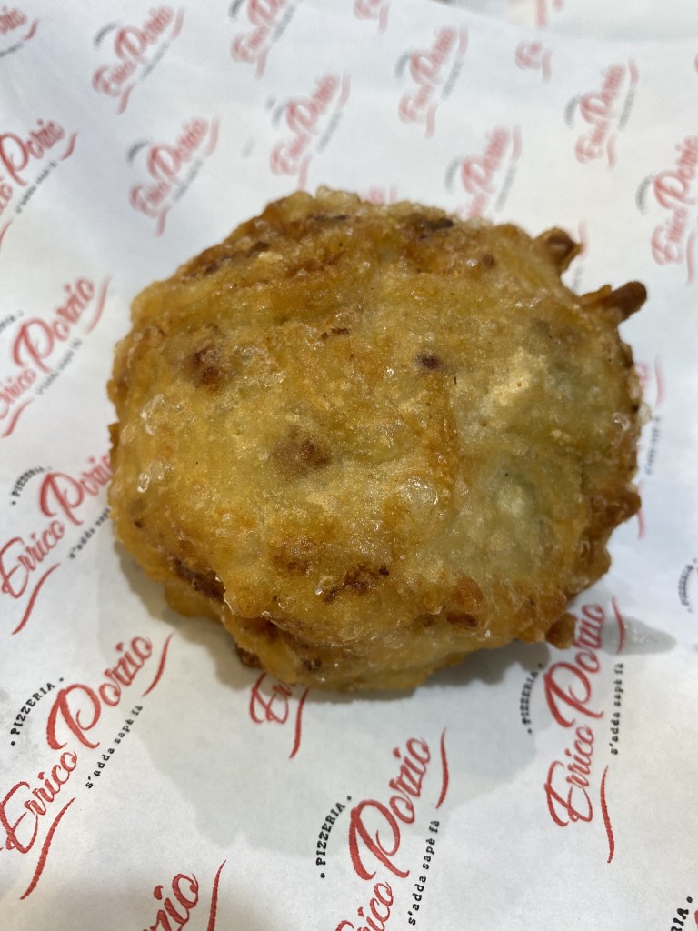 “Errì, fa tu!”. Ed ecco l’estro del pizzaiolo in cinque mosse: fritta-al forno-crema di parmigiana-bufala a crudo-basilico. Asciutta, ricca, saporita col dualismo caldo/freddo che ripristina e apparecchia per il morso successivo. Mangerina.