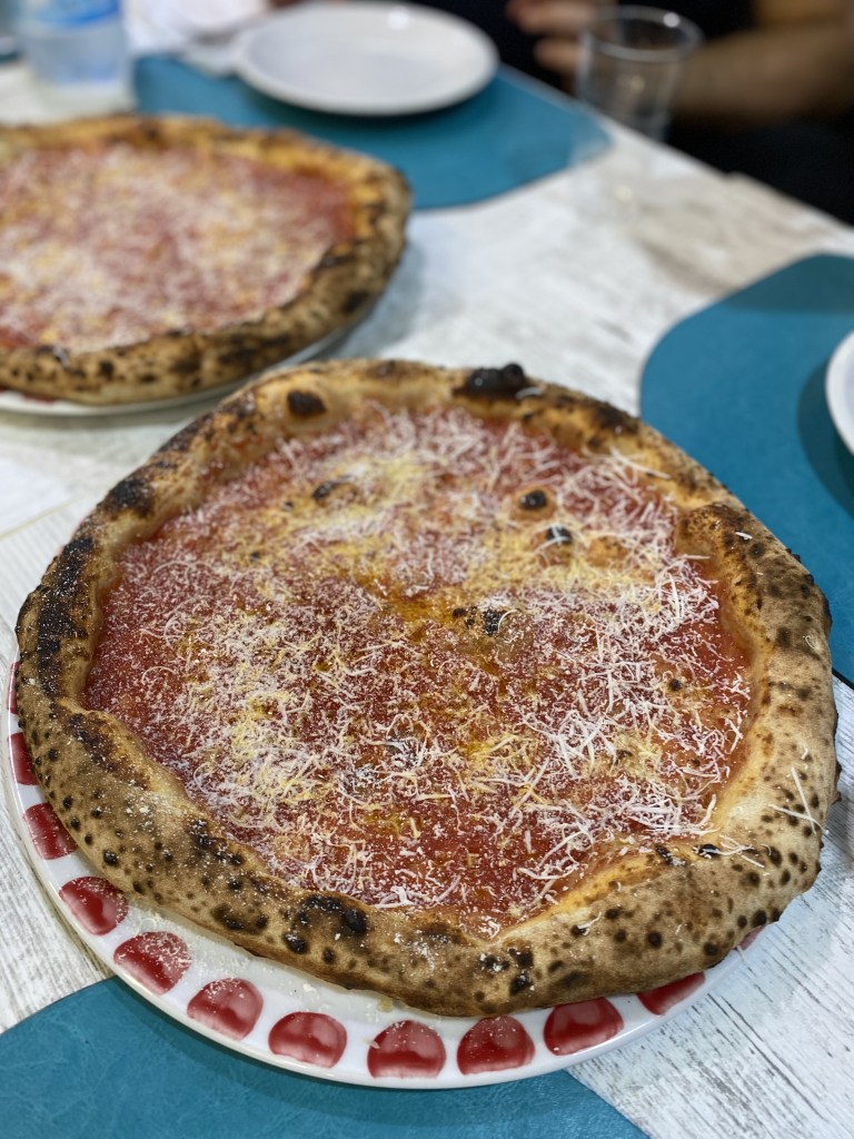 Tra i vari rumori (di fondo), che piacciano o meno, varcando la soglia della Pizzeria Porzio due sono i profumi forti, costanti, vividi che avvampano… i duplici protagonisti che si alterano di continuo, tik tok tik tok, come il suono cadenzato dell’orologio.