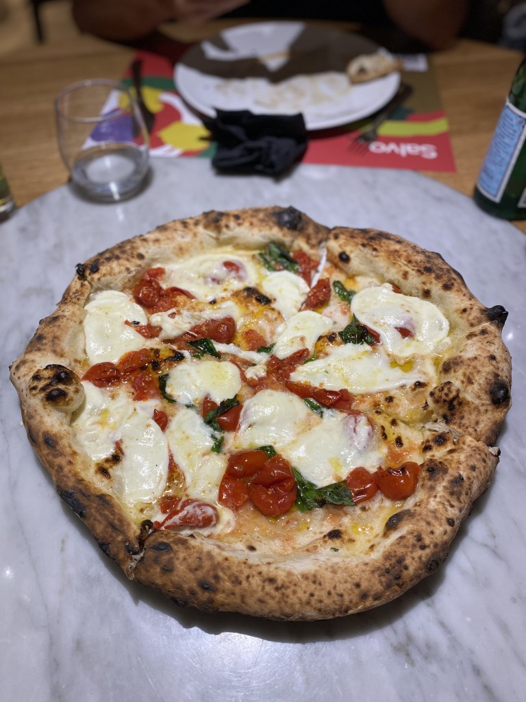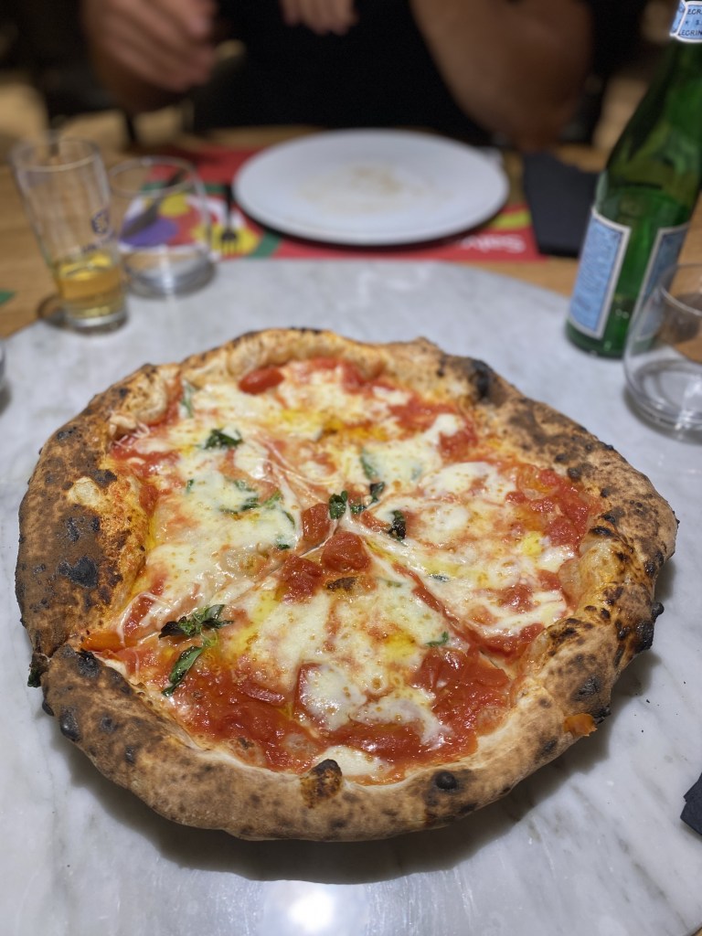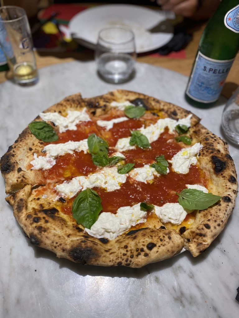 Finale con la prima della lista. Nomen omen. Quella che si ordina senza sottolineature, senza leggere il menù. La Classica, quella eterea, dalla dignità autonoma. Che se ce l’hai di fronte, ti frastorna ed è più preziosa di un collier. Il sapore di posti d’infanzia, lasciati chiusi in un cassetto. Pomodori pelati San Marzano DOP, fiordilatte, olio extravergine d’oliva Gretel di San Comaio. Eterna.