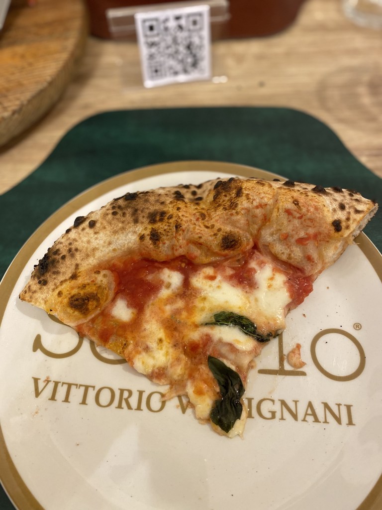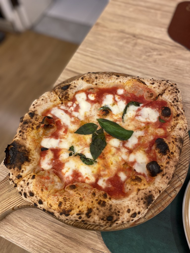 Margherita perfetta. Ripeto, perfetta. Bella e graziosa, priva di indecisioni. Fluida, quasi da bere. Non una pizza fighetta, delicata certo, poco vanitosa ma per niente timida. L’impasto non abbandona la triade tricolore, equilibrata e armonica, e si candida co-protagonista. Rinata.