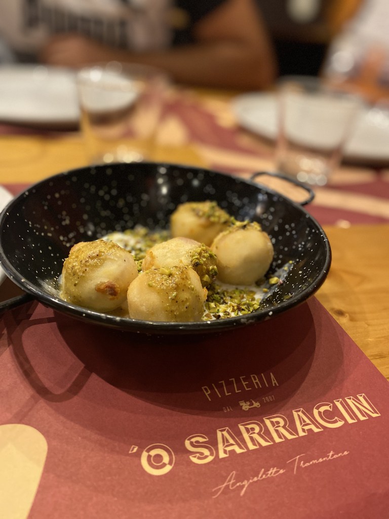 Il menù è ricco, anzi ricchissimo. Tanti sfizi come le simpatiche Ricottine di bufala con pepe, salame dolce, provola e impanatura al riso. Calde, croccanti dal cuore tenero e ammaliante. Giochicchiare.