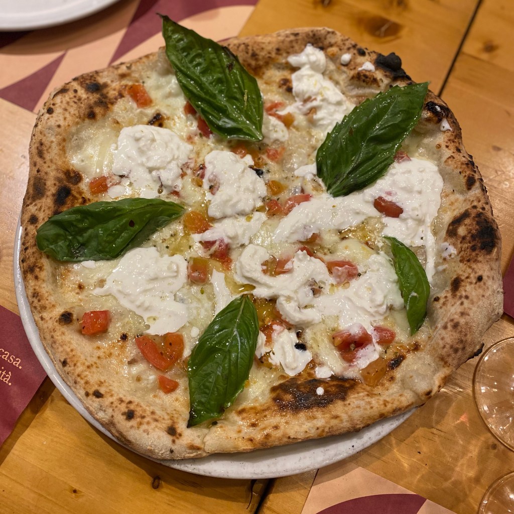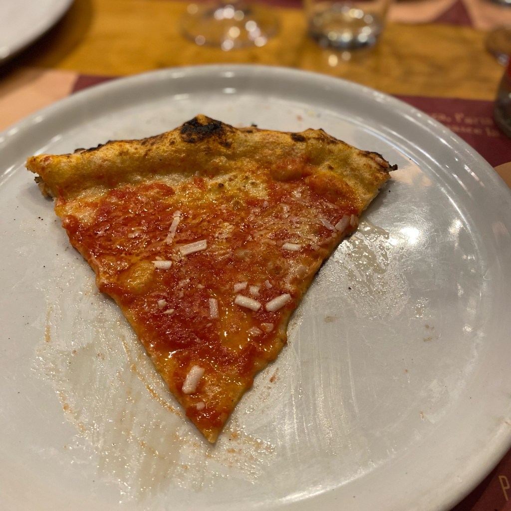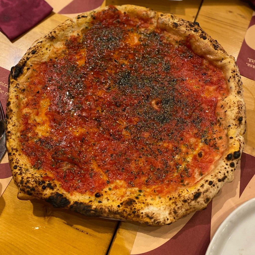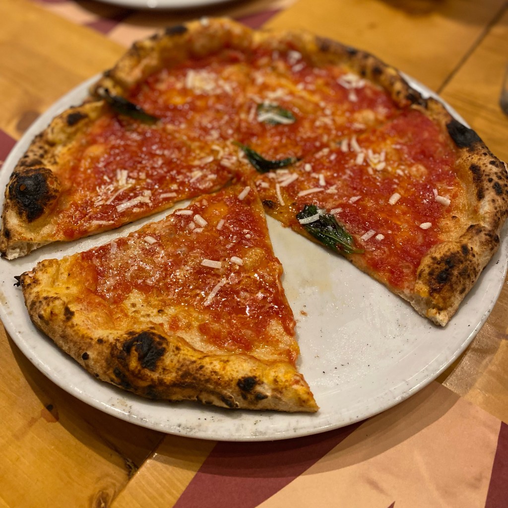 La Marinara Style ha la stessa struttura, precisa, cotta a puntino ed equilibrata. Design da 081 che si dona alla causa. A’ lav’ d’uoglio! La pasta, metodo diretto, 24 ore massime di lievitazione e media idratazione, è co-protagonista col pomodoro e l’olio. Angioletto l’edulcora con l’aglio orsino. Con un origano più profumoso, sarebbe idilliaca. Interminata.