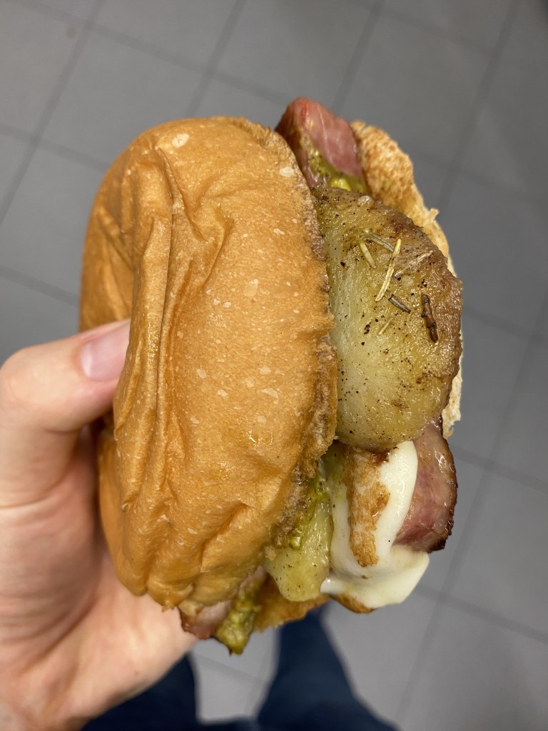 Un panino romantico. Più che un panino, uno Sciù (choux), per dirla alla napoletana, dal ripieno impalpabile chin’ e’ devuzione.