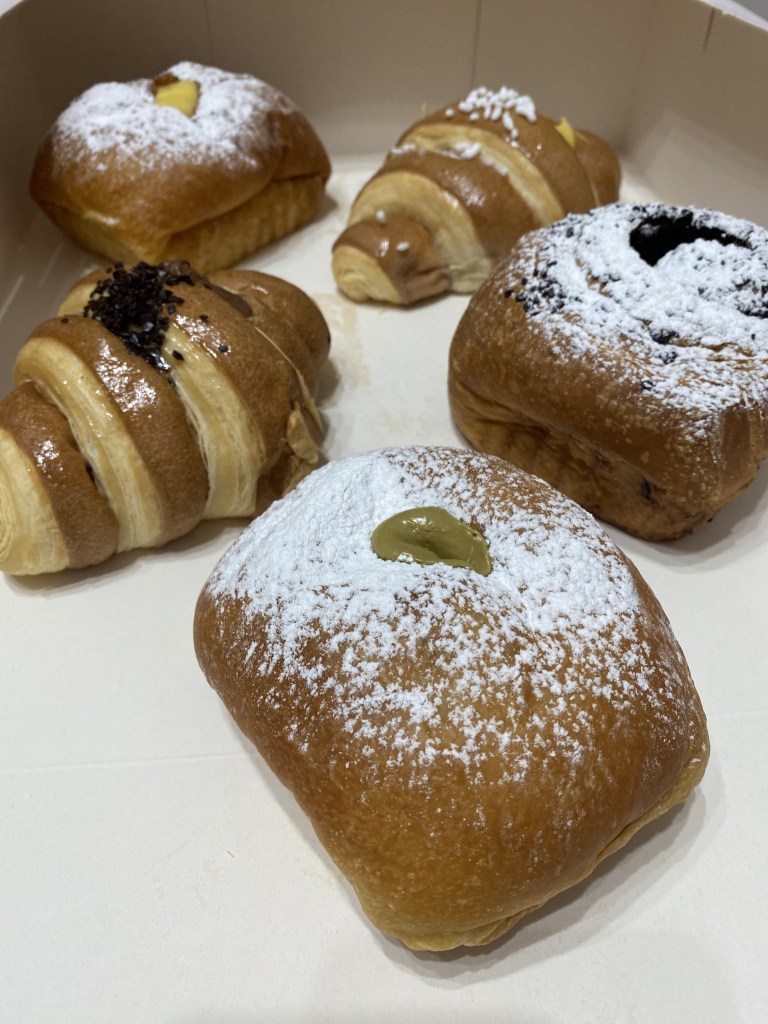 La Brioche Pandoro è quel senso estremo di leggerezza. Nuvole e grecale. Delicatezza impalpabile che esplode di farcia luculliana. Con crema al pistacchio è totale perdizione. Un impasto al 95% di idratazione, con la struttura che parla da sé. Un gigante del menù. Affinità elettive.