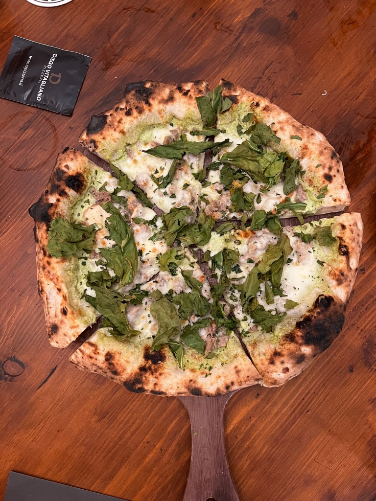 Ma da 10 Diego Vitagliano Pizzeria la serendipità vive in ogni dettaglio, nella bravura di Antonio Scorza, nella professionalità del servizio impeccabile con Cristian Causa, Giuseppe Andreozzi, Noel Kamilah Arya, nella competenza della sommelier Eleonora Rescigno, nella scelta di avere una colf per i servizi igienici fissa durante il servizio.