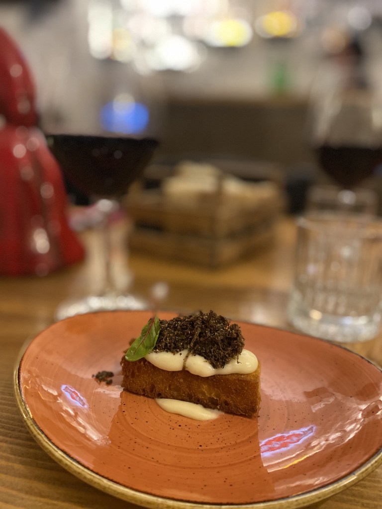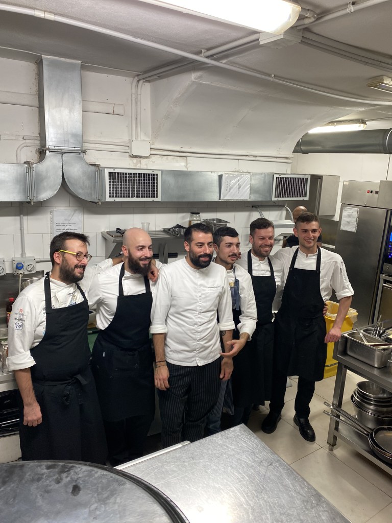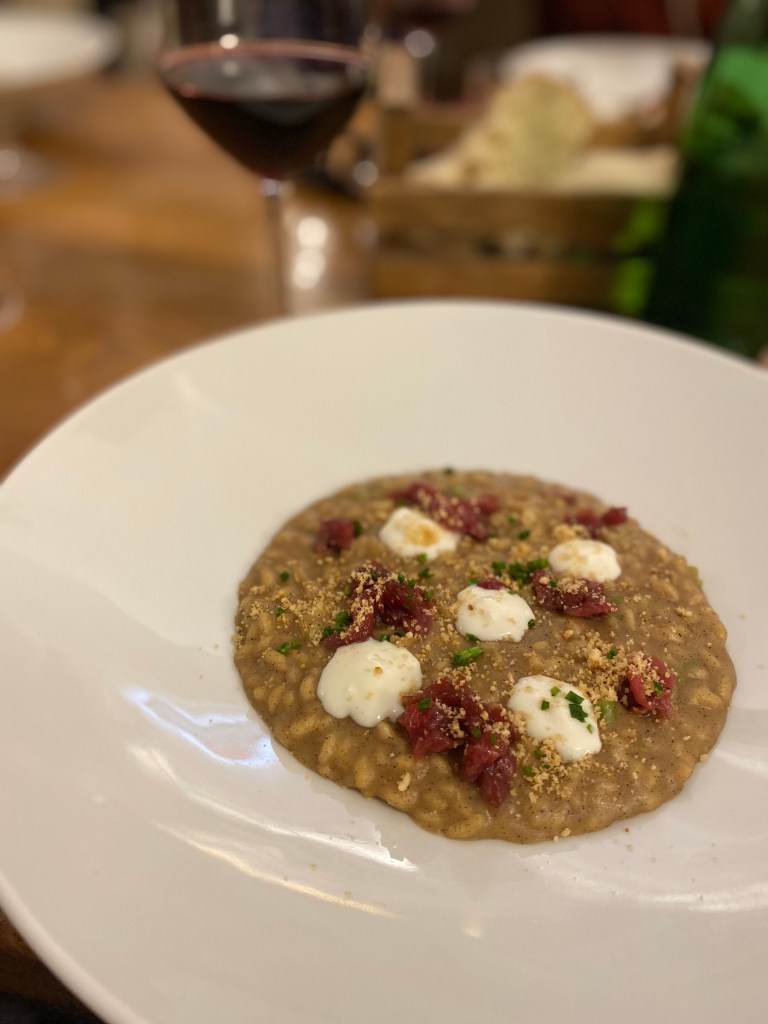 Entra in campo Colantonio e sale in cattedra la cremosità, l’avvolgente, l’abbraccio. Risotto etereo, ricco, preciso. Un meraviglioso viaggio nei sensi nella crema di cipollotto e yogurt, tartare di manzo alla soia, canapaccio a latte di bufala affumicato e nocciole tostate. Profumo e gusto. Un incredibile punto di vista sia micro che macro.