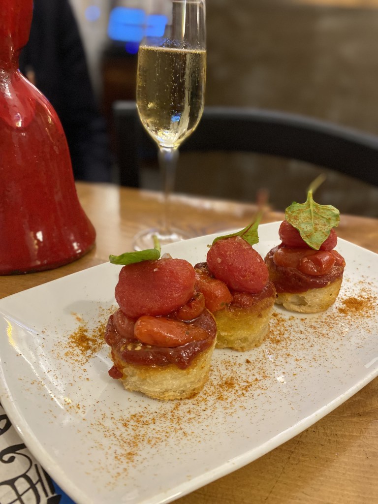 I Gerolomini – Trattoria Pop de I Tribunali ha un chiarore diverso. Napoletanità, arte moderna a km 0 in ogni cm quadrato del locale e una buona dose di sana follia. Perché Francesco è un eclettico, a tratti un po’ naïf e i suoi piatti hanno una personalità impattante. Una bella botta di aria bella, nuova, che stuzzica e scava dentro. Tipo come la sua Bruschetta che perde la crosta, si immerge nel burro chiarificato e accoglie un gioco di tre pomodori (confettura, confit, semi dry) tra consistenze, note e temperature.