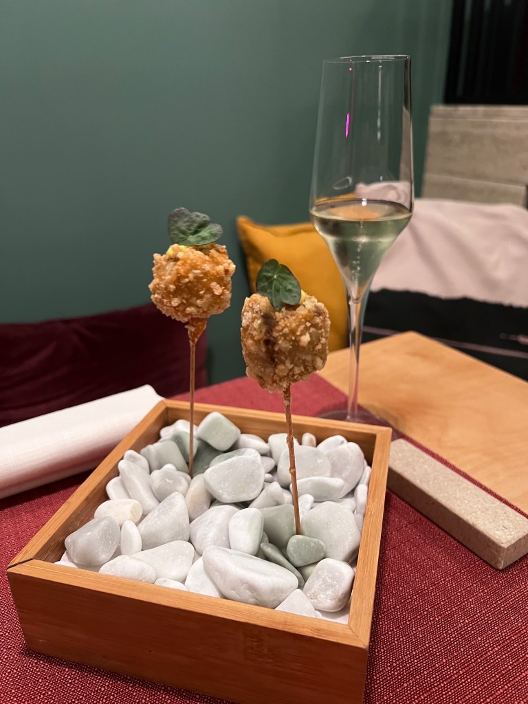 Messaggio subliminale, se non fosse per la garbata accoglienza di Luigi, presente e puntuale senza eccessi teatrali, e per l’entrée di benvenuto di Luca, un Lollipop di impepata di cozze con maionese al limone. Bocconcino superlativo, il mare-fritto.