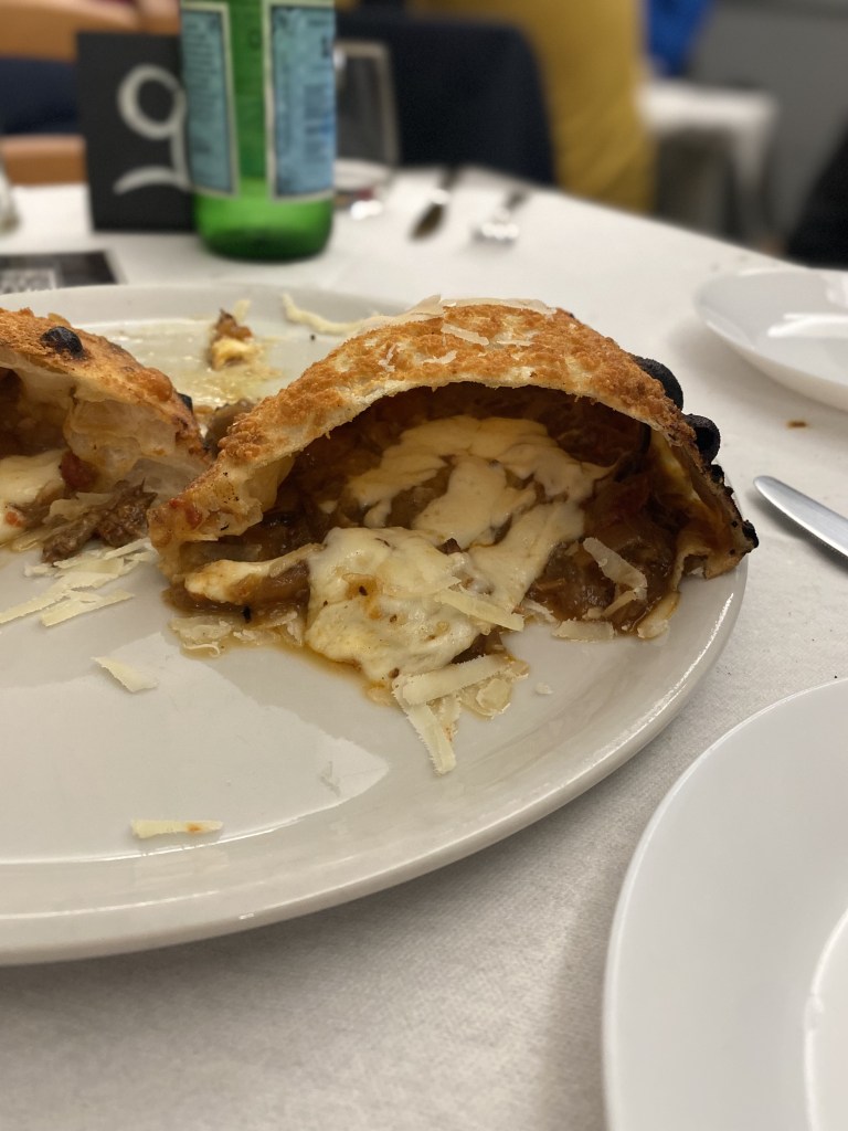 Anche quando ha coltivato la passione per le Grotte. Il Leonardo del calzone al forno. Alto, gonfio, scolpito. Godurioso per la farcitura generosa, dall’animo avvolgente e dall’armatura sapida e croccante. La Genovese inside conferma la bravura dei fornelli. Filologia del vuoto/pieno immersivo.