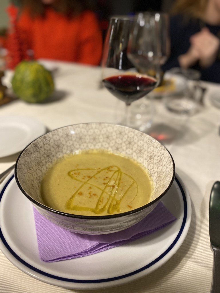 L’entrée è Guancialismo applicato (su bruschetta) sfumato con aceto e profumato alla salvia. Semplicità ricca e intesa. La Vellutata di verdure arriva voluttuosa direttamente dall’orto.