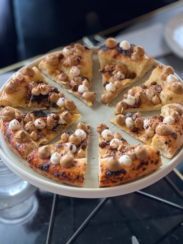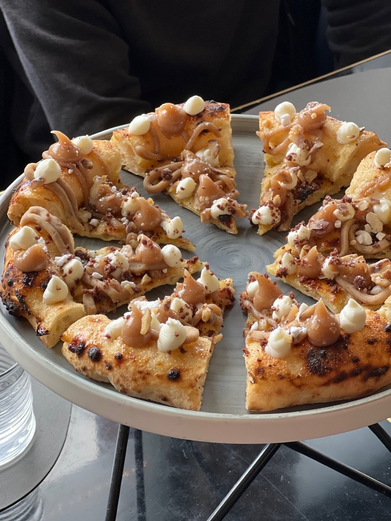 La Rifugio (fiordilatte, brie, speck, gel di sidro piccante, ricotta affumicata, insalatina di mele noci e pepe rosa, origano) predispone al dolce.