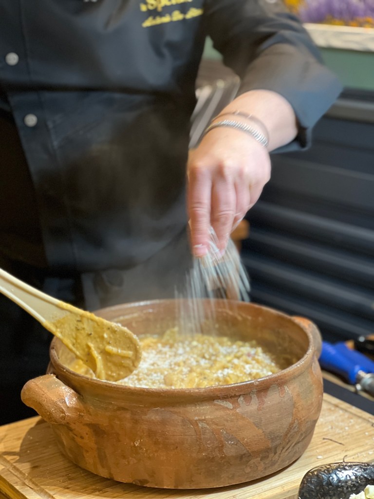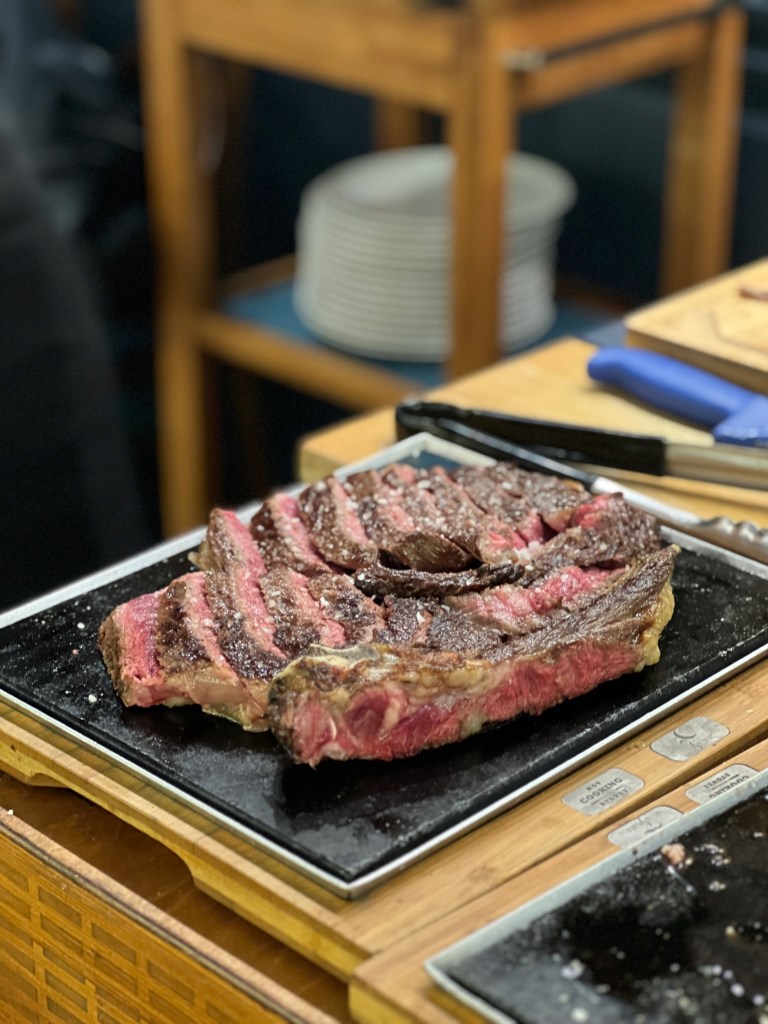 Saranno le esalazioni e i profumi – tremendamente idealizzati e distensivi, lo scenario della brace a vista tanto eccentrico da risultare a modo suo armonioso, l’alchimia di Antonio che fluisce ardimentosa, in picchiata con la sua maestria collaudata. Umami spinto! Ho mangiato burro. Una mitragliata di rime libere.