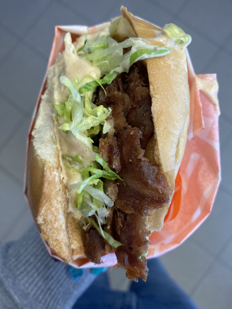Zero fighettume. Ciccia dall’anima fortissima. Succulente, saporita, friccicarella (oggi si dice crispy). Primadonna onnipresente, dall’inizio alla fine. La salsa picchia, l’insalata sgrassa. Le coordinate della precisione. Un sandwich che po esse fero e po esse piuma! Una bella matassa emotiva da gestire, dove l’istinto dubbioso si converte senza freni con una massiccia pienezza papillare. Sto panino ti fotte!
