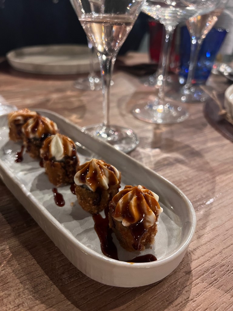 Giochi senza frontiere. Precisione nel punzecchiare un ventaglio esteso di culture e icone pop. La carne si maschera da sushi con una passerella di maki di galiziana, beef, picanha e chicken roll. Divertissement d’autore.