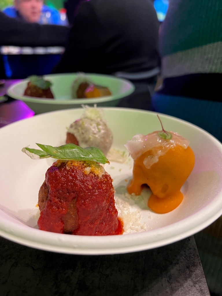 Datemi una bowl di quelle polpette e nessuno si farà del male! Le avrei mangiate così, anche desnude. Eppure, Matteo gli cuce addosso abiti sinuosi e raffinati. E mo’ ragù, e mo’ crema di zucca, lardo di cinta senese e cacioricotta, e mo’ cacio pepe e lime. Istinto, eleganza e food trend. Skills…