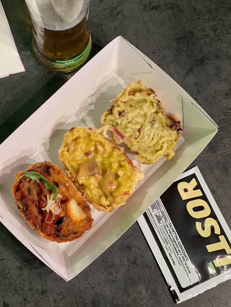 E si parte… fried for future! Le reginette della casa: Pasta e piselli, Carbonara e Parmigiana Fritta.