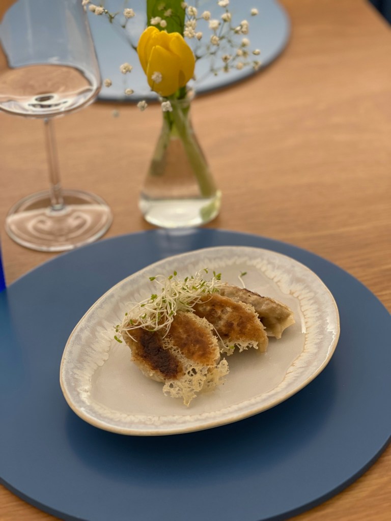 Poi ancora fusion… per piatti che parlano il giappo-napoletano! Gyoza di maiale, gamberi e capasanta, salsa di soia e zenzero e ziti spezzati, come vuole la tradizione, ma con genovese di tonno, provolone del monaco e katsuobushi. Arigatō!