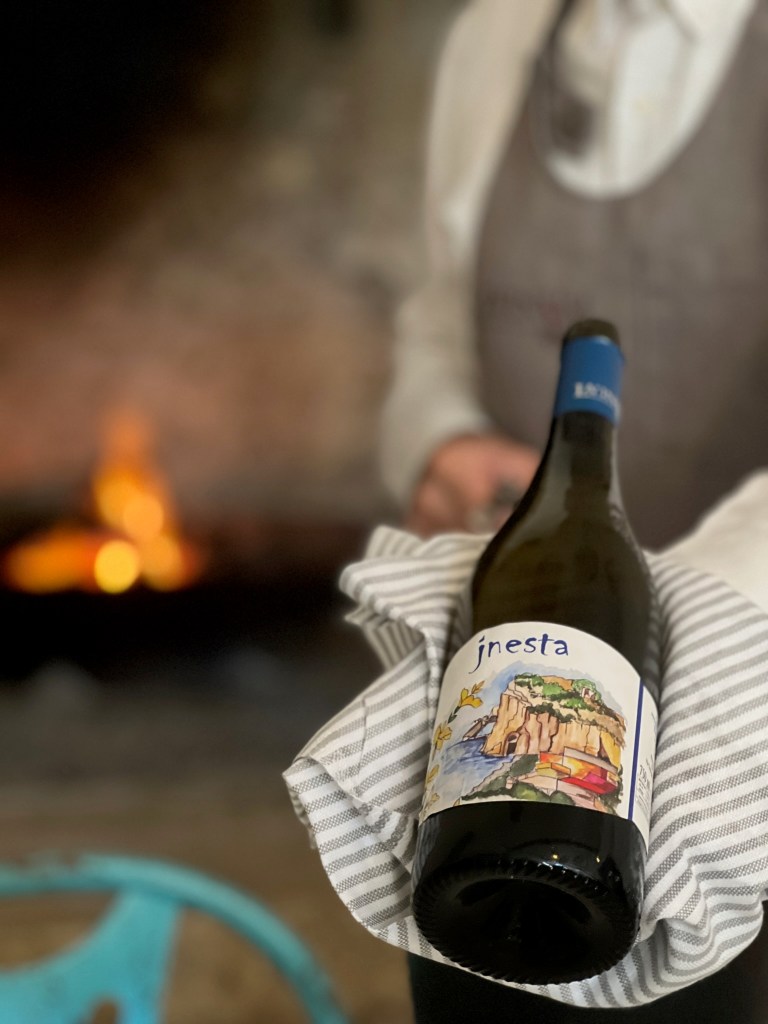 Le viti sui terreni terrazzati corteggiano le onde e la costa frastagliata. La casa cantina con le cave sotterranee sussulta di botti e di impianti per la vinificazione. Orto per il cm zero, le due sale dove troneggiano il grande camino e le spesse mura in tufo.